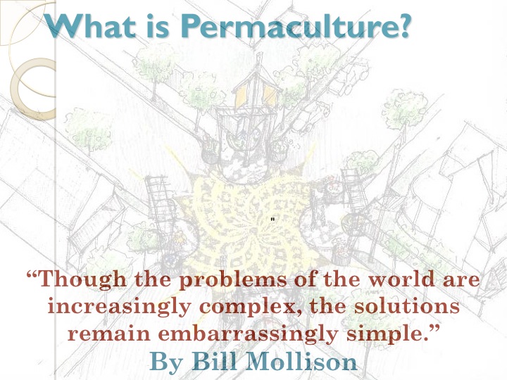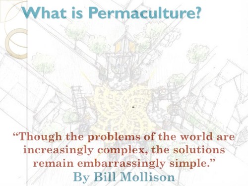 I like to call Permaculture “Living on Planet earth 101”, or “Whole Systems Thinking” because it is a ethical green design philosophy that focuses on working with the laws of nature and the laws of energy to fulfill human needs to create a sustainable human society. It touches upon most aspects of our lives including food production, construction, energy, the arts, economics, and much much more. In short, Permaculture is the synergy of Society with Ecology (the sustainable element), achieved through the use of Design Methods (Creative Problem solving) to create low work, high yielding (resource) systems to fulfill all of our needs to live on this planet; while at the same time working to create more diverse, harmonized, & sustainable ecosystems for the planet. Just imagine going from endless miles of inefficient agriculture, homes, & communities dependent on finite fossil fuel and other resources to fulfill their needs through goods produced half way around the world to a Permaculture based society; a way that fulfills all of its needs through local natural cycles with minimal human input and produces abundant amounts of resources to fulfill our needs as well as natures!